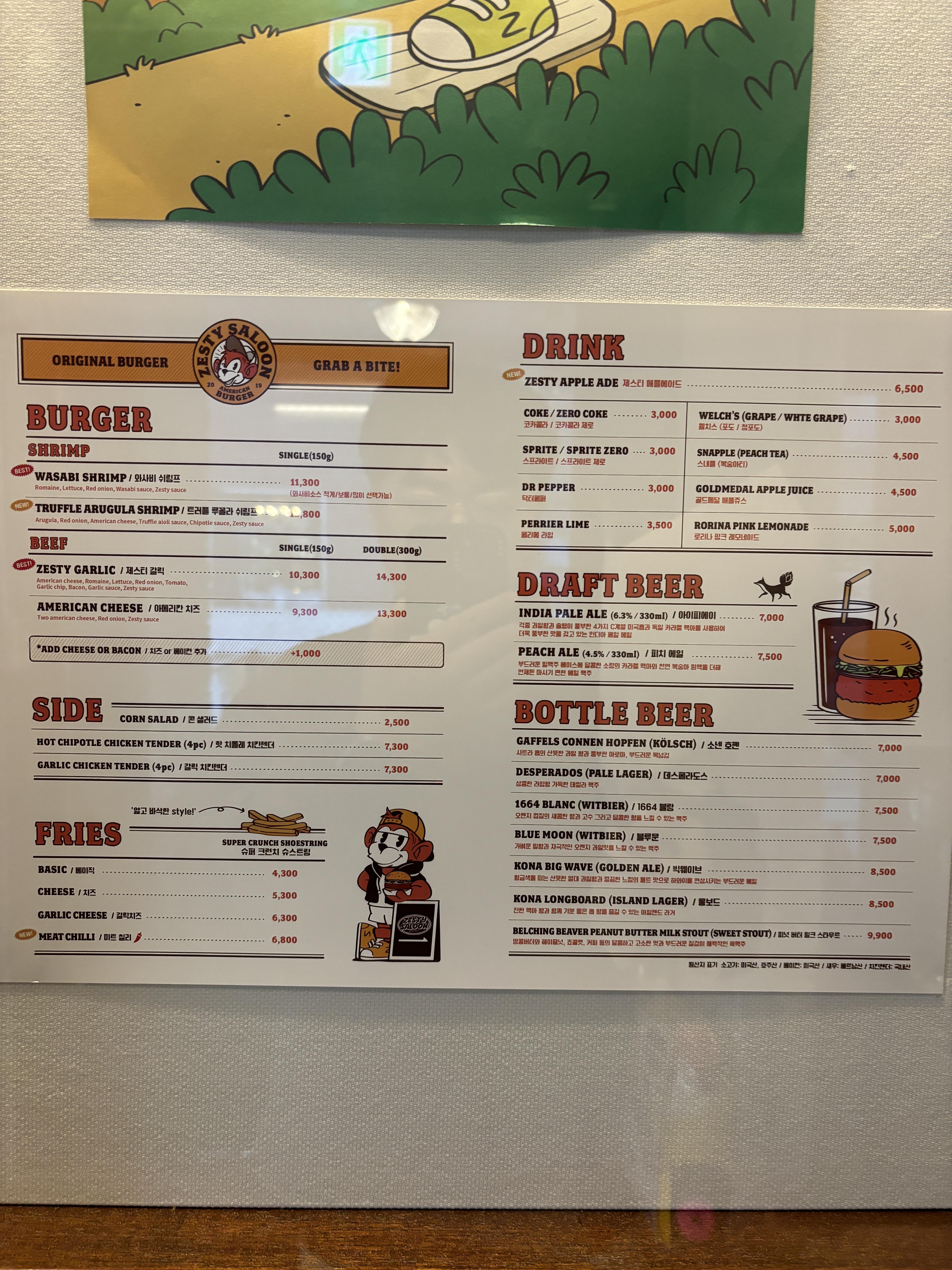 햄버거, 사이드메뉴, 프라이, 음료, 맥주까지 여러 가지 판매하고 있습니다.